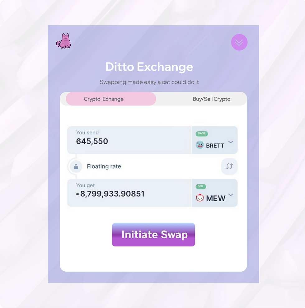 Whether you're looking to diversify your portfolio, capitalize on emerging opportunities, or simply explore new horizons in the ever-expanding crypto ecosystem, Ditto Swap puts the power of interoperability at your fingertips. Our cutting-edge technology ensures fast, secure, and cost-effective transactions, enabling you to move your assets across different blockchains with confidence and convenience.